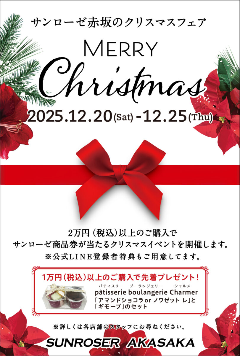 サンローゼ赤坂では、来たる12月20日(土)~12月25日(木)までクリスマスフェアを開催いたします。