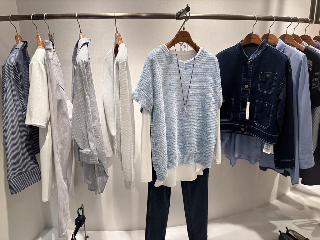 軽やかなデニムジャケットやニット、